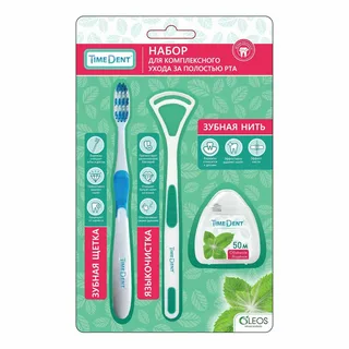 Набор 4 зубная щетка/языкочистка/флосс №10 OLEOS